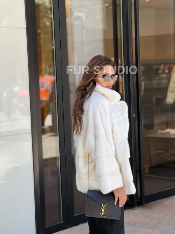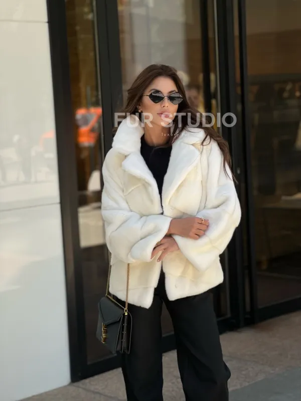 Модель прекрасно сочетается с любым гардеробом: от базового до вечерних туалетов. Прямой крой позволит скрыть недостатки фигуры. Добавьте статусную сумочку в образ, и вы будете выглядеть бесподобно. Приобрести норковое изделие – выгодное вложение в себя, качество верхней одежды будет радовать долгие годы. Купить белую короткую норковую шубу могут женщины, которые любят выглядеть дорого, но со вкусом.