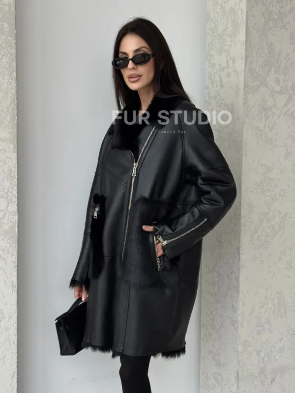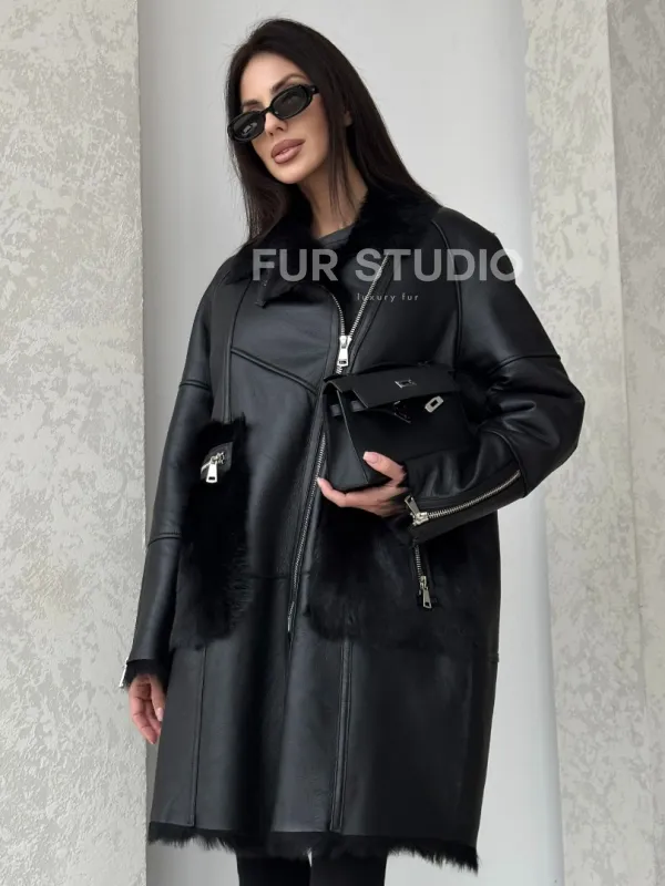 Черная дубленка на тоскане 100740