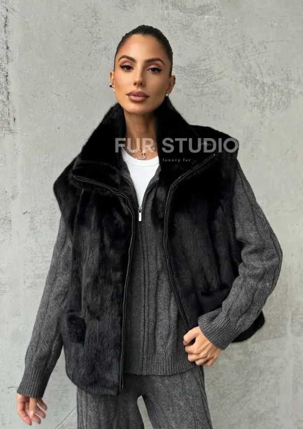 Очаруйтесь изысканной красотой и непревзойденным комфортом с нашей эксклюзивной коллекцией элитных жилетов. Изготовленный из первоклассного натурального меха, Черная норковая жилетка не только согреет вас в холодные зимние дни, но и подчеркнет ваш безупречный стиль.