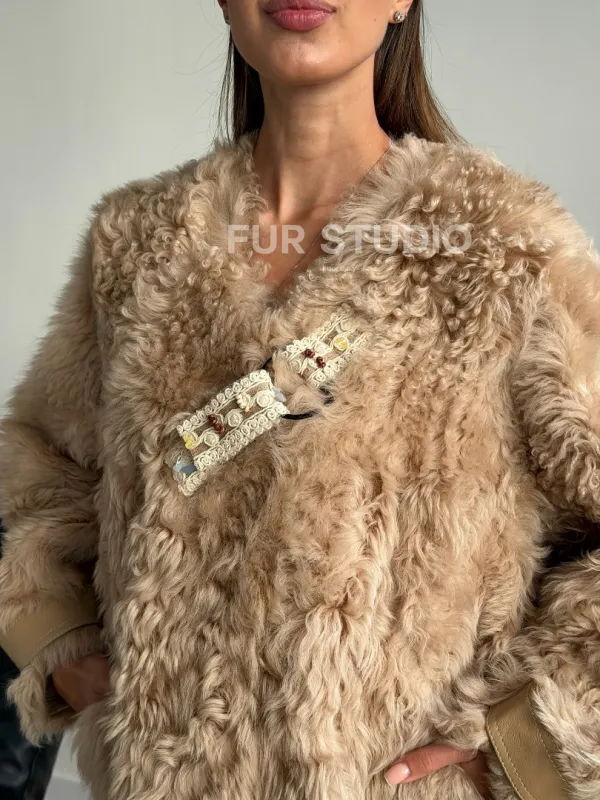 Короткая куртка из овчины. Модель предлагается в размерах от 42 до 46. Оптимальная длина моделей 60-65 см подчеркивает линии вашей фигуры. Эта дубленка станет неотъемлемой частью гардероба для тех, кто предпочитает роскошь и утонченность натуральной кожи.