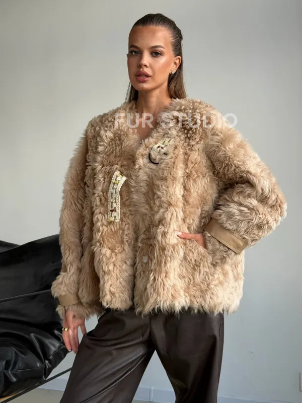 Короткая куртка из овчины доступна для покупки в нашем шоуруме Furs Studio в , а также предлагается удобная доставка во все города России. Обогатите свой гардероб этой дубленкой, которая прослужит вам многие годы, добавив немного роскоши в ваш повседневный образ.