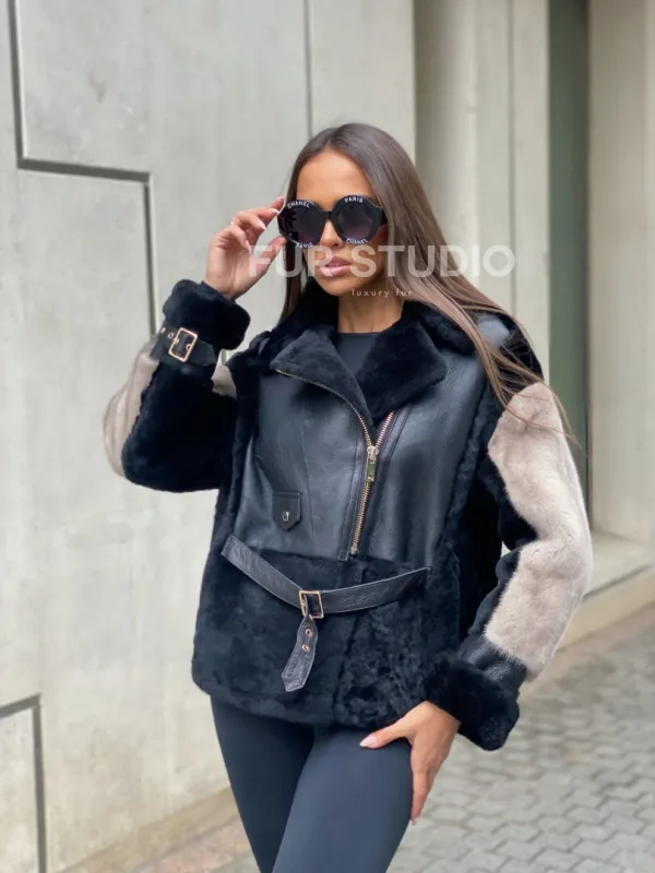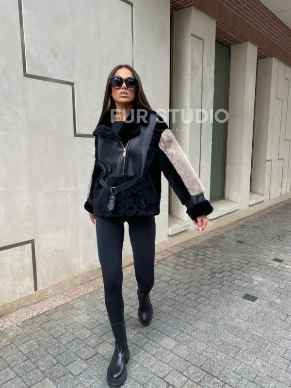 Широкие манжеты подчеркнут изящность кистей. Шикарный воротник акцентирует внимание на изгибах шеи. Модель прекрасно подойдет под брюки, леггинсы и другой гардероб, сочетается с вечерним lookом. Необычный фермуар придает образу экстравагантности. Купить куртку – дубленку из мериноса с мехом норки могут женщины, обладающие безупречным вкусом.