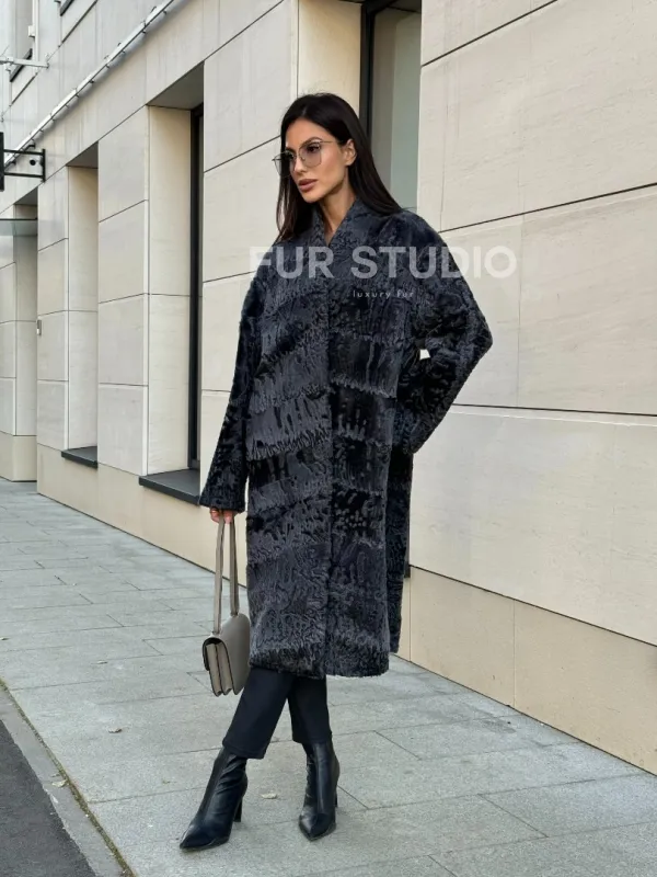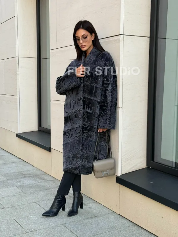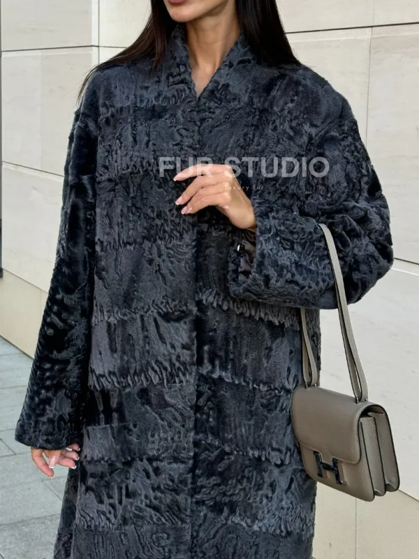 Меховое пальто из каракуля Graphite V-образный воротник доступна для покупки в нашем шоуруме Furs Studio в . У нас так же есть доставка во все города России. Добавьте немного роскоши в свой гардероб с этой шубой, которая будет служить вам многие годы.