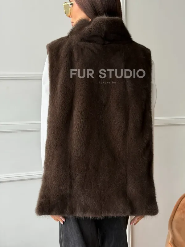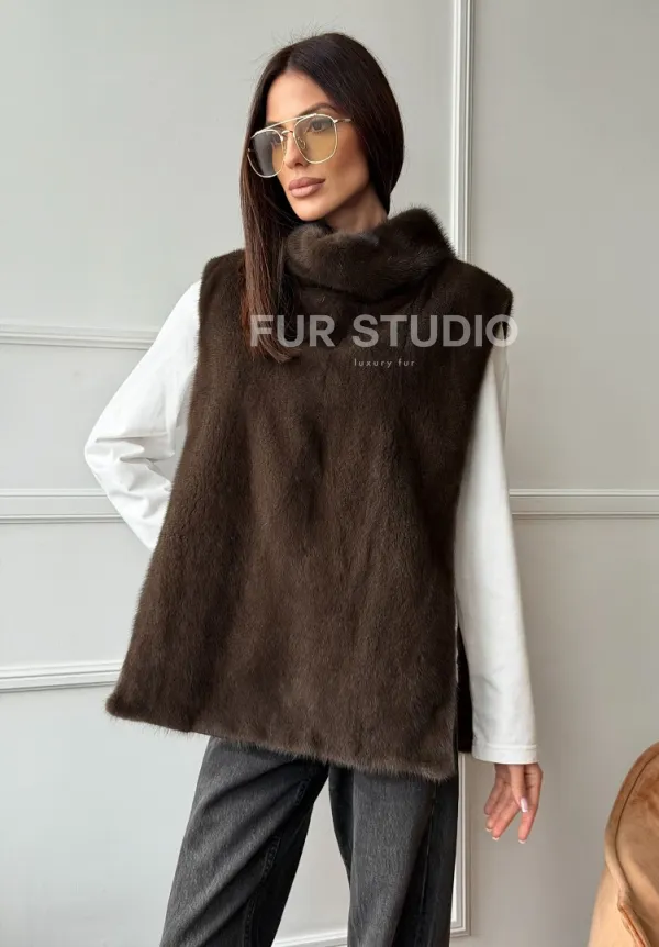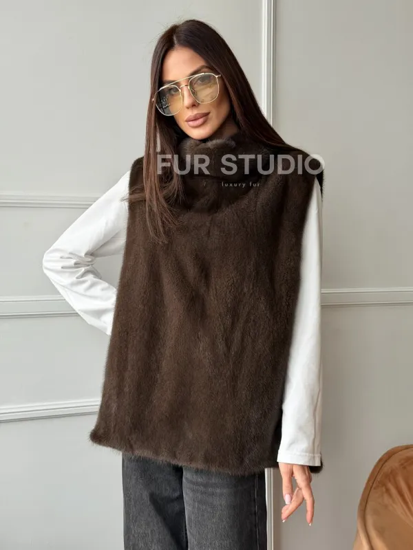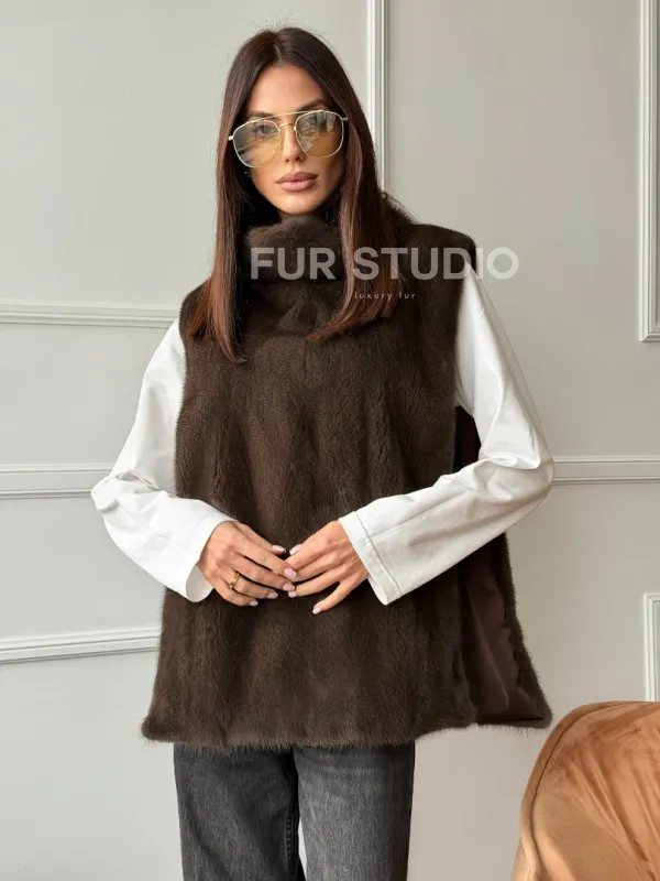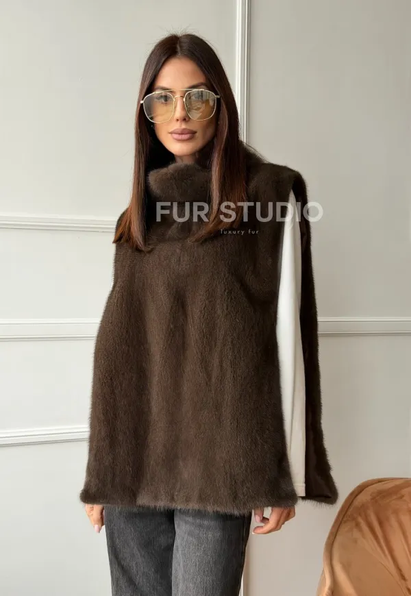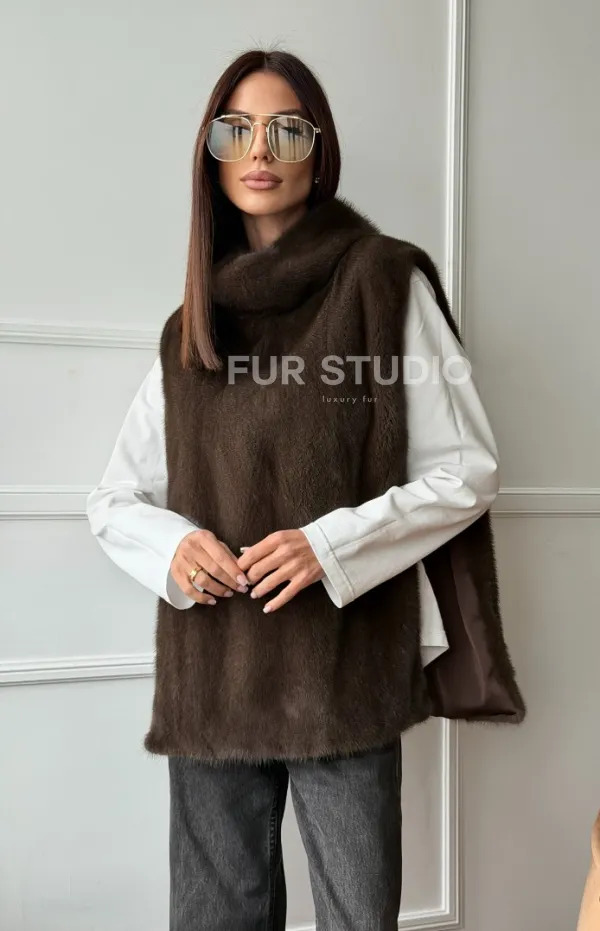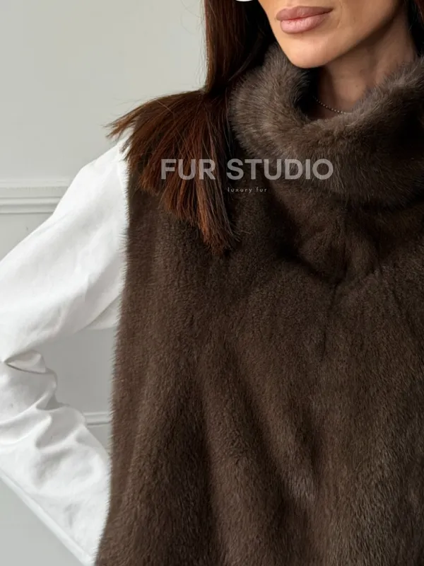 Норковая манишка коричневого цвета 102742