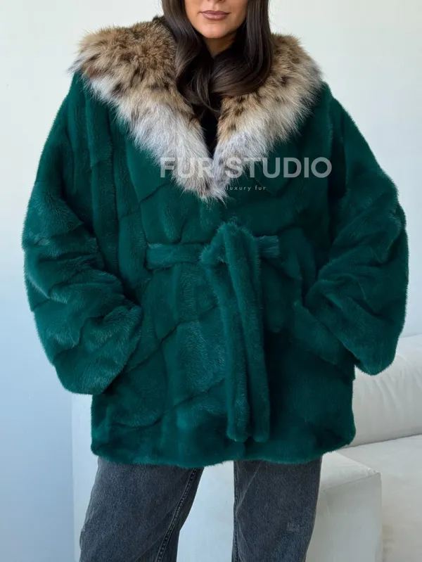 Норковая шуба с капюшоном из рыси 102514