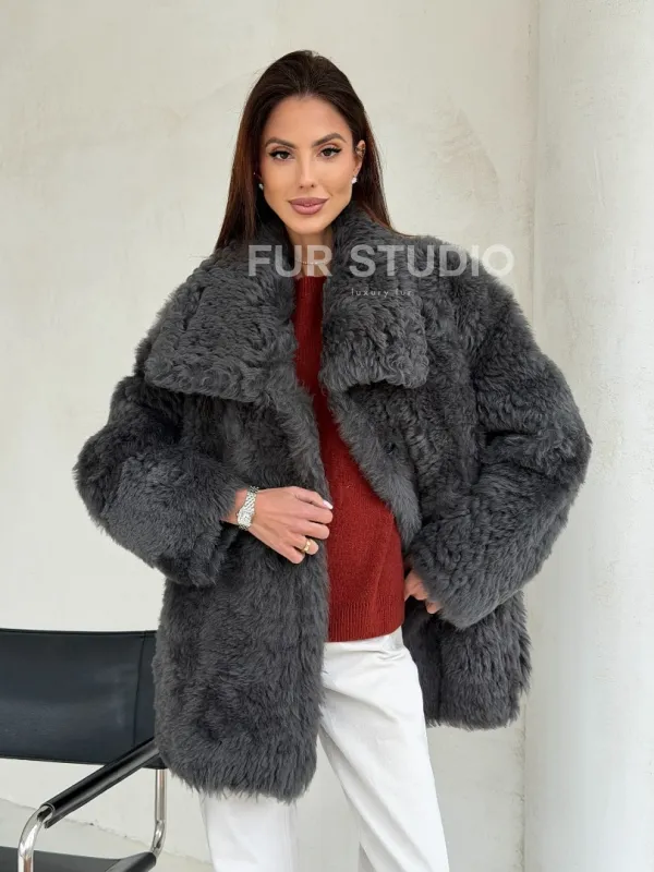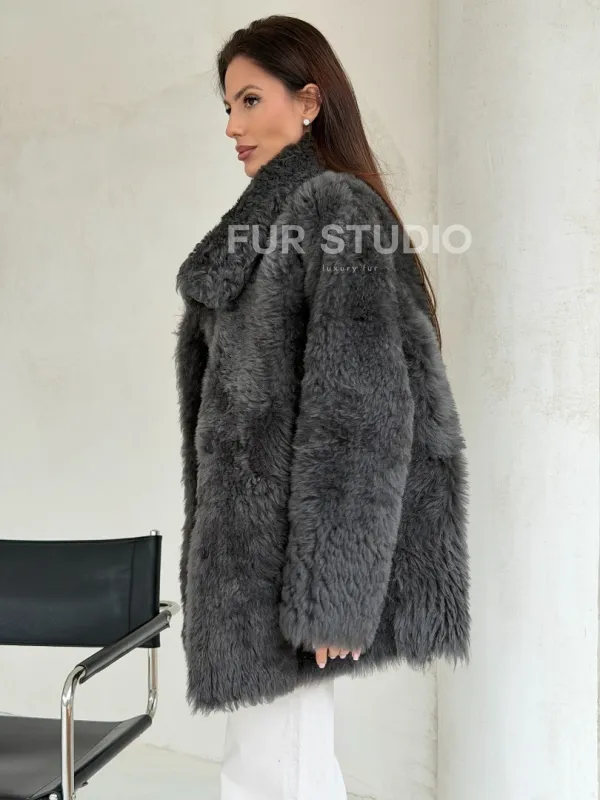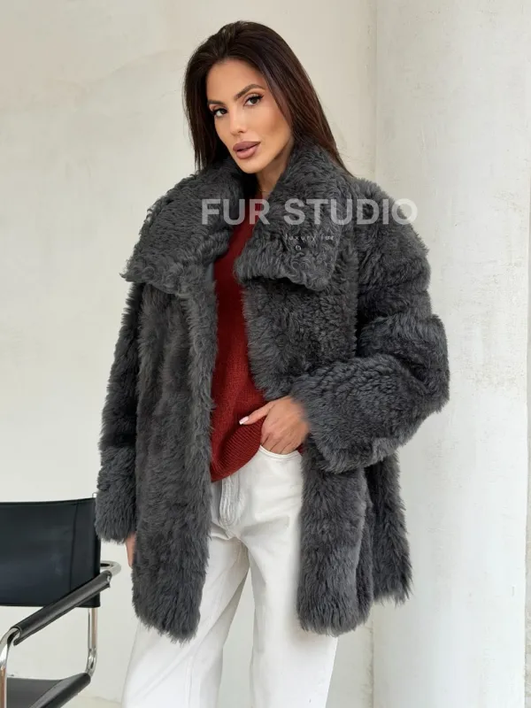 Серая дубленка из тиградо. Модель предлагается в размерах от 42 до 48. Оптимальная длина моделей 70-75 см подчеркивает линии вашей фигуры. Эта дубленка станет неотъемлемой частью гардероба для тех, кто предпочитает роскошь и утонченность натуральной кожи.