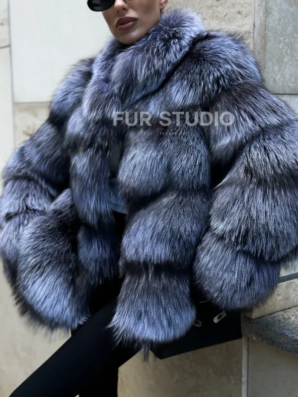 Мех данной шубы лиса, цвет серый. Предлагается в размерах от 42 до 50. Длина модели 60-65 см, что выгодно подчеркивает фигуру девушек. Эта модель идеально подойдет для девушек и женщин, предпочитающих роскошные натуральные меха.