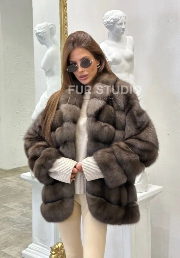 Стильный жакет из меха соболя доступна для покупки в нашем шоуруме Furs Studio в . У нас так же есть доставка во все города России. Добавьте немного роскоши в свой гардероб с этой шубой, которая будет служить вам многие годы.