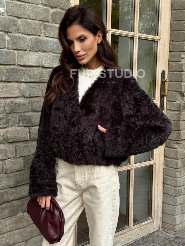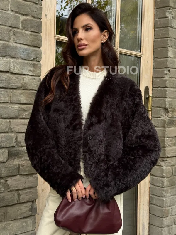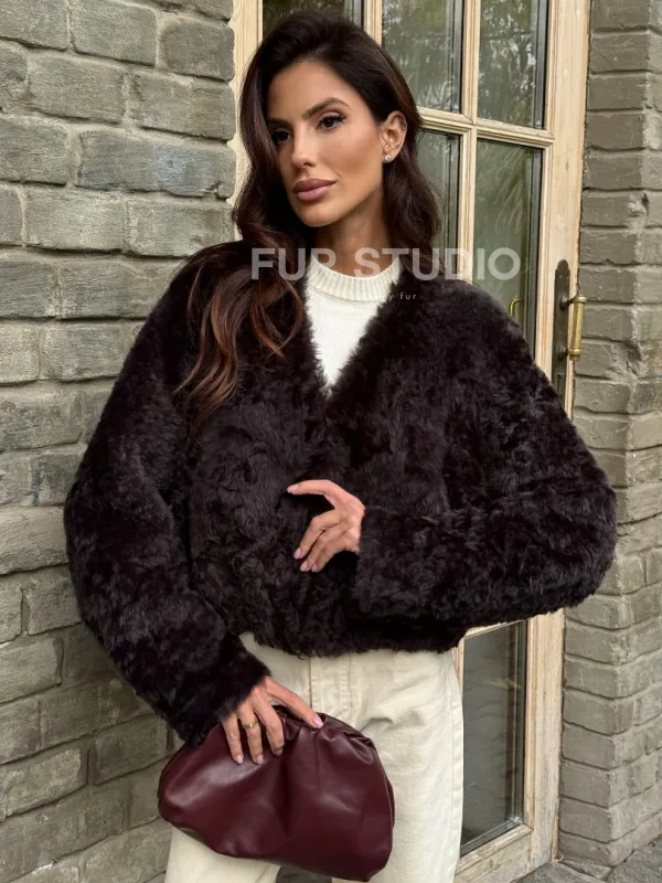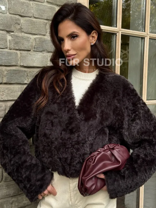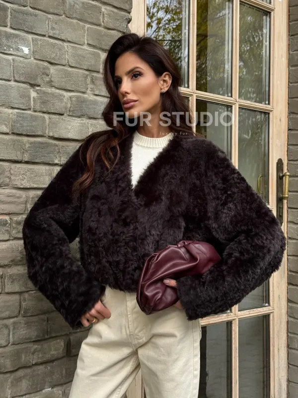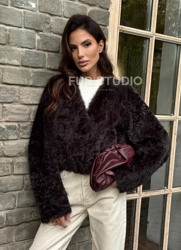 Укороченная шуба из овчины калган 102355
